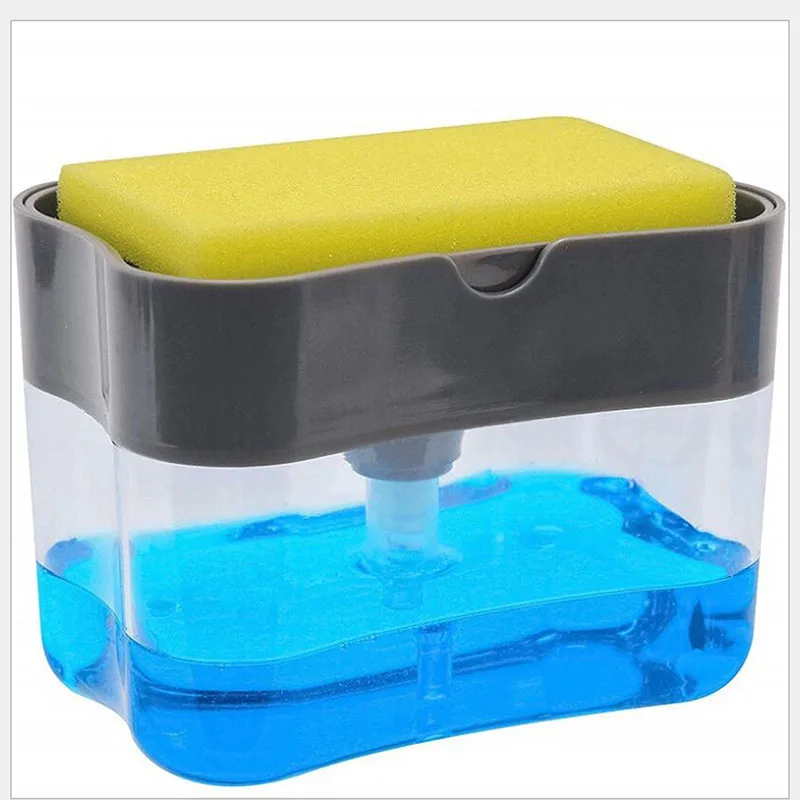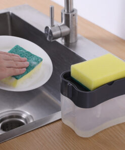 Dispensador de detergente líquido 2 en 1, organizador de bomba con esponja, herramienta de cocina de esponja manual